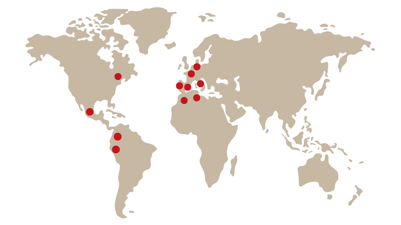 Francia Norte y París · Francia Sur, Este y Oeste · Francia Sureste · Italia Prato · Italia Centro-Sur · Italia Como · Italia Puglia · Marruecos · Polonia · Túnez · Portugal Lisboa · Portugal Oporto · Holanda · EE.UU. Nueva York · Colombia · México · Perú